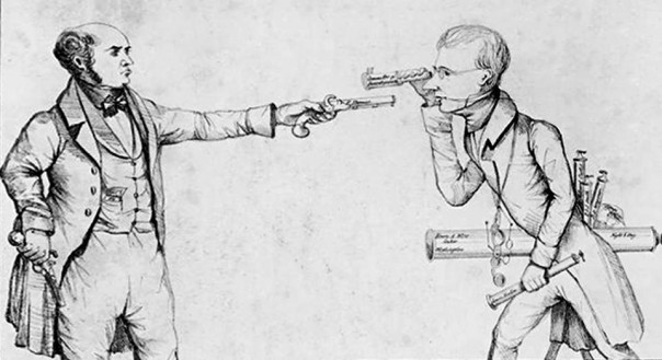 После этого Бисмарк изо дня в день был вынужден выслушивать, что именно демократы и их неформальный лидер Вирхов думают о его авантюрной и агрессивной внешней политике. К 1865 году это так достало канцлера, что тот решил тряхнуть стариной и оправдать свою кличку «бешеный помещик». Он вызвал ученого на дуэль.