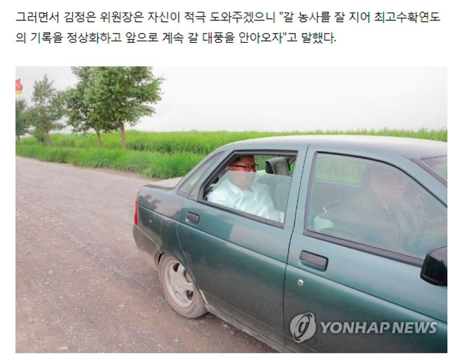 На фото, опубликованном Yonhap, видно, как он сидит на заднем сиденье Lada Priora.
