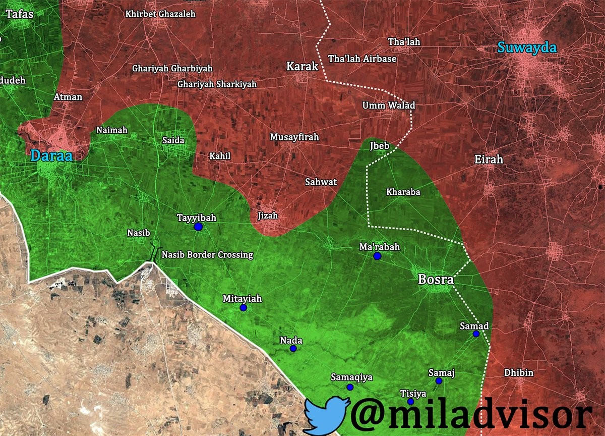 Боевики горола Босра аш-Шам уже начали сдавать вооружение. В то же время, в городе Тафас т.н. умеренная оппозиция присягнула на верность связанной с ИГИЛ* группировке Армия Халида ибн аль-Валида.