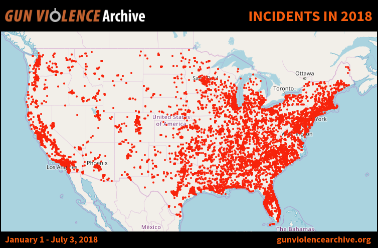 Статистика применения огнестрельного оружия в США за шесть месяцев 2018 года