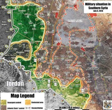 В свою очередь, боевики пытаются остановить продвижение сирийской армии, бросая в бой последние резервы. Так, в окрестностях города Тафас джихадисты пошли в контратаку, используя танки при поддержке пикапов с 23-мм артустановками. Однако, все усилия мятежников оказались тщетными. Противник, неся большие потери, откатывается к иорданской границе. Источник