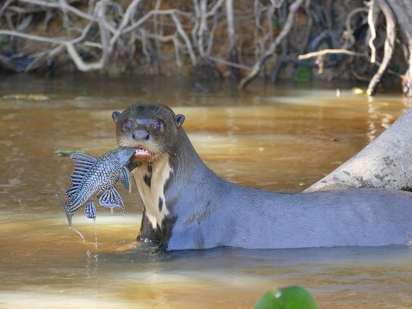 Пираньи спешат скрыться в мутной воде, кайманы до последнего надеются, что их не заметят, а огромная анаконда медленно отступает в заросли травы — именно так ведут себя кровожадные амазонские хищники, когда на охоту выходит семья бразильских выдр.