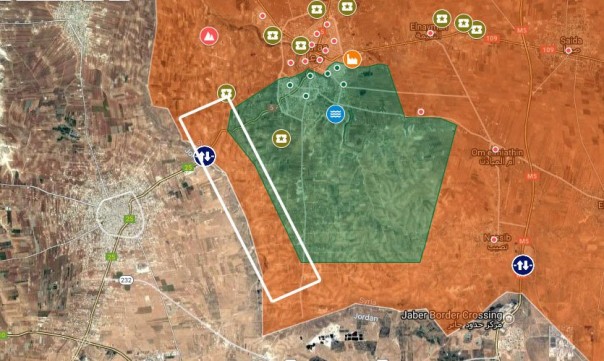 Кроме того, САА и ее союзники заняли крупный участок приграничной территории, дойдя до города Храб аш-Шам, а также блокировав с востока подконтрольную боевикам часть города Даръаа.
