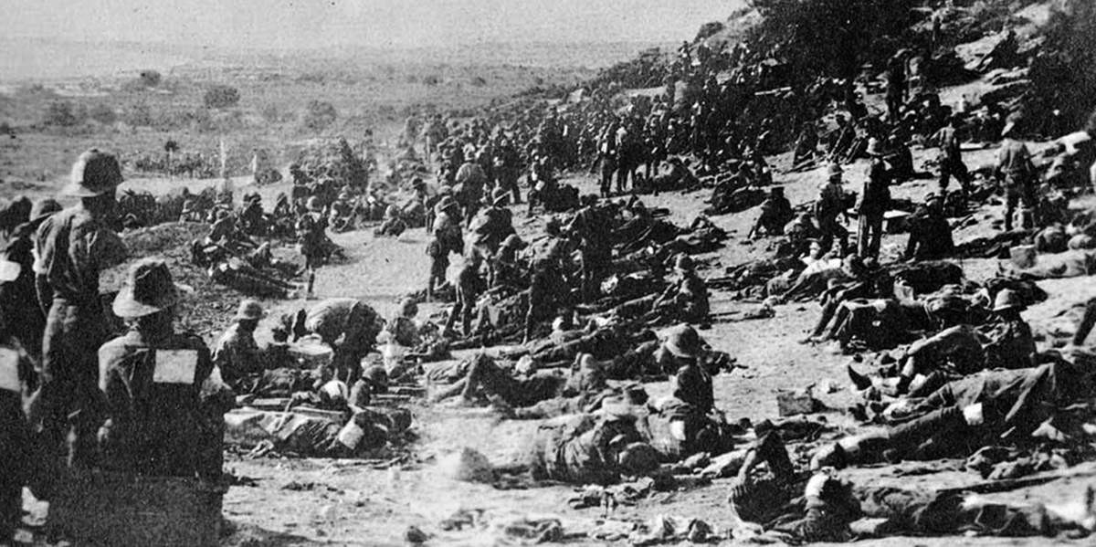Раненые новозеландские солдаты у Чунук Баир
