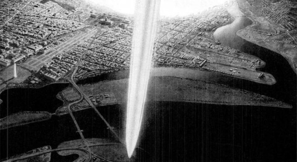 Ракетный «дождь» со скоростью три мили в секунду падает из космоса на 12 ключевых городов США. А именно: Нью-Йорк, Чикаго, Сан-Франциско, Лос-Анджелес, Филадельфию, Новый Орлеан, Денвер, Вашингтон, Солт-Лейк-Сити, Сиэтл, Канзас-Сити, Ноксвилл. И на дамбу Гувера (а где ещё в Fallout играть?).