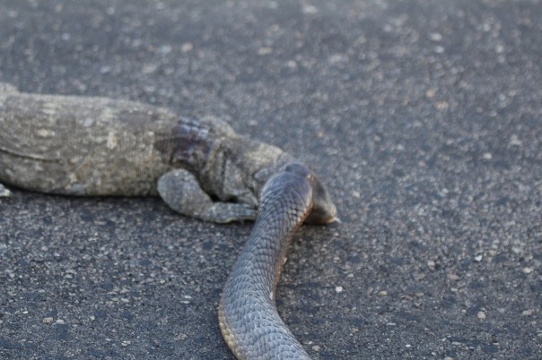 В конце концов варан перестал двигаться, однако проехавший мимо автомобиль отогнал змею. Вернулась ли она затем на место охоты, или варана съел другой обитатель парка, неизвестно. Источник