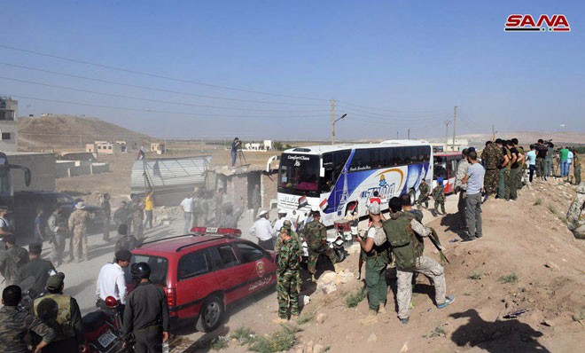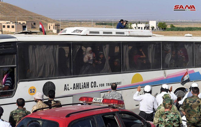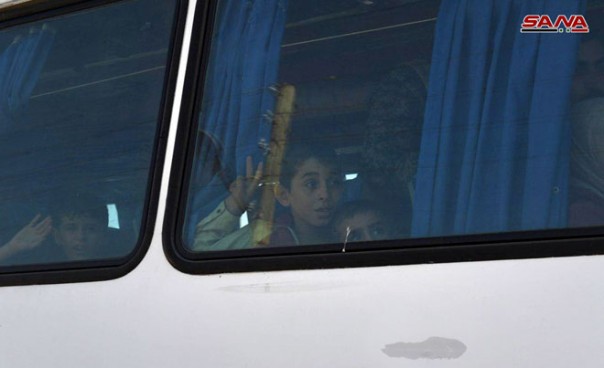 Военный корреспондент агентства САНА сообщил о продолжении процесса эвакуации жителей блокированных поселков Кафрея и Аль-Фуа для их дальнейшего вывоза в центры временного проживания через гуманитарный коридор в районе Теллет Аль-Эйс на юге провинции Алеппо.