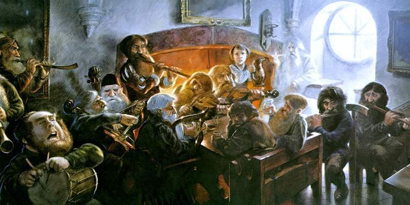 Даже в долгий и тяжёлый поход к Одинокой горе они не смогли не взять скрипочки. В смысле, арфы.