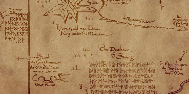 Карта Трора, изначально нарисованная самим Толкином: всеобщее наречие и пометки гномьими рунами