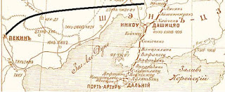 Ниже – русская карта за 1903 год. Здесь неплохо видно изображение Великой Китайской Стены (северо-восточнее Пекина), а ориентировочный путь русских войск в Пекин я показал жирной кривой линией. Как видите, для русских войск не знать о Стене было нереально; конница должна была уткнуться в нее или найти в Стене пролом (они там есть). Но… Великую Китайскую Стену просто не заметили. На карте она есть, а в воспоминаниях – нет.