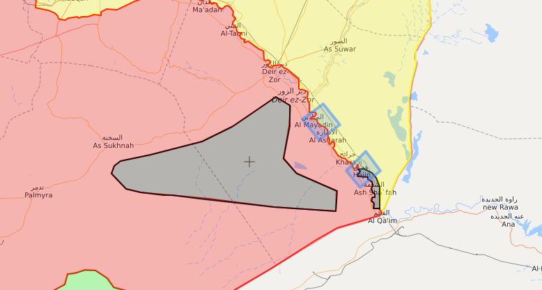 В то же время, в восточной и северной частях страны стремительно захватывал территории самопровозглашенный халифат ИГИЛ. ИГИЛ контролировало большую часть нефтяных ресурсов Сирии, стратегически значимые города Дейр-эз-Зор и Ракка, а также внушительную часть границы с Турцией.