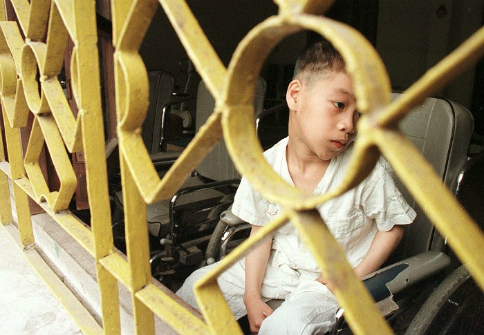 Вьетнамский ребенок, предположительно, жертва агента "оранж" во втором поколении. 1996 год.