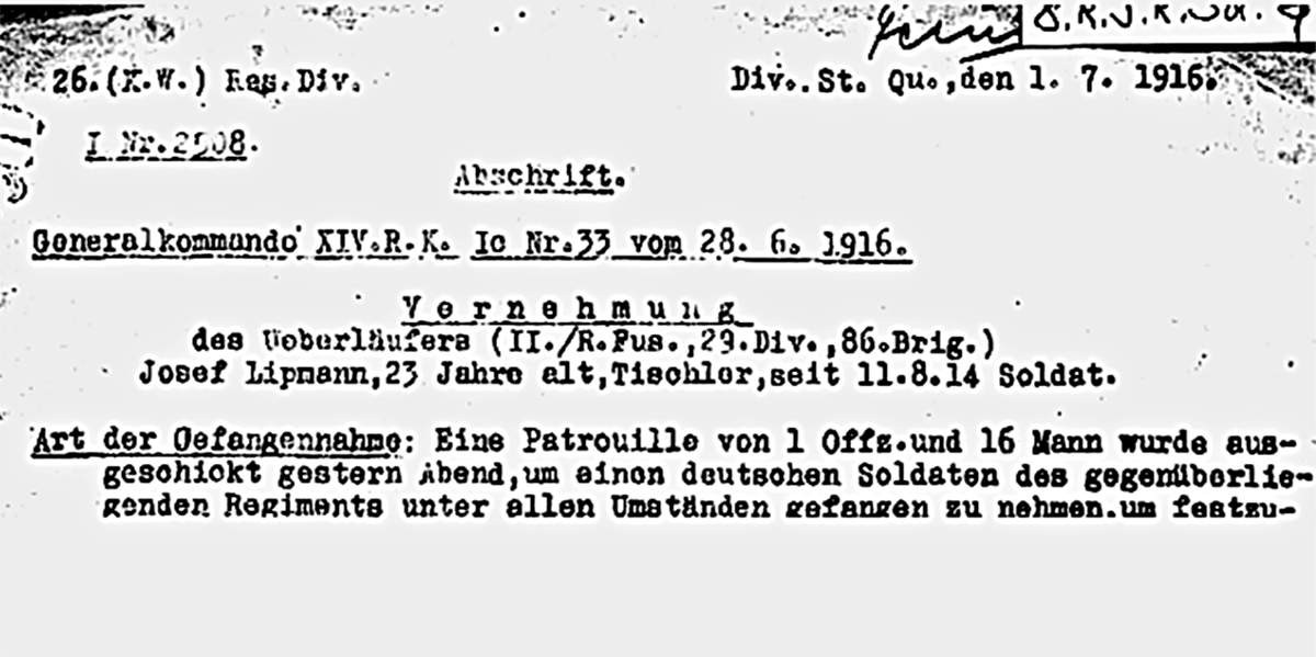 С началом заварухи Липман отполз подальше от своих товарищей во тьму и укрылся в воронке. Когда всё стихло, он оставил свою каску и винтовку и пополз в сторону вражеских окопов. Возле которых на ломаном немецком стал кричать, что хочет сдаться.