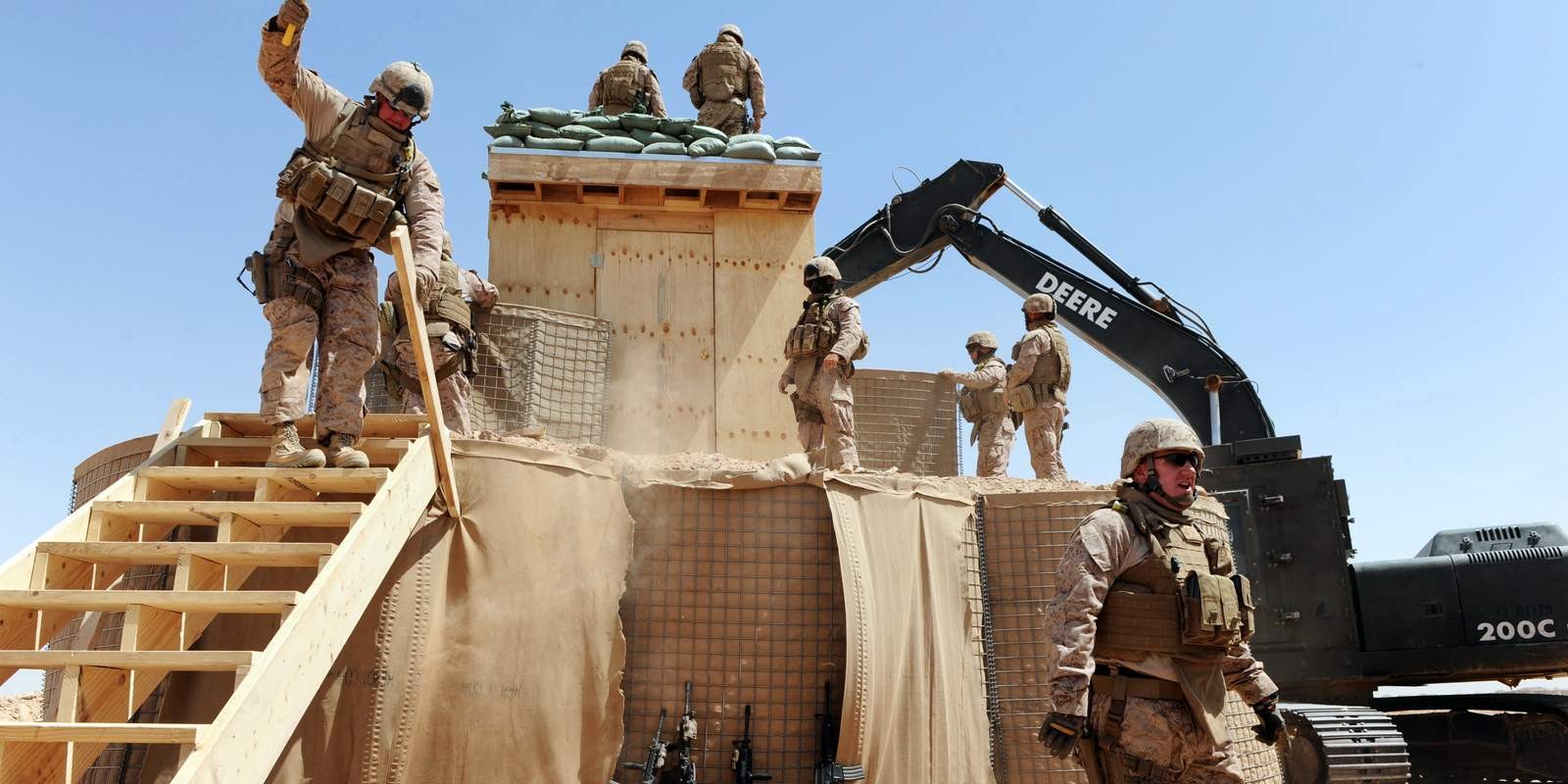 Постройка базы — это вам не два клика мышкой в компьютерной игре. Это комплекс сложнейших мероприятий, благодаря которым на пустынной прежде земле возникают новые военные города. И хотя сто́ит это всё маманегорюй, но зато сохраняет жизни и здоровье солдат. А заодно приносит кучу прибыли сопутствующим фирмам.
