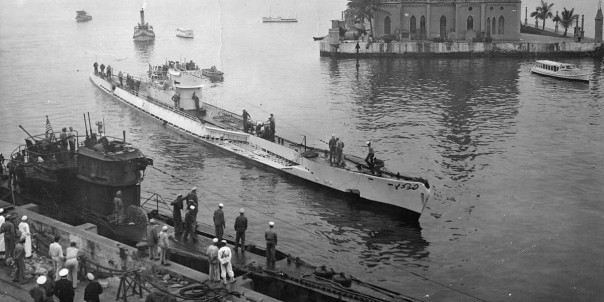 U-977 (внизу) и U-530 в порту военно-морской базы Рио-де-Жанейро, сентябрь 1945