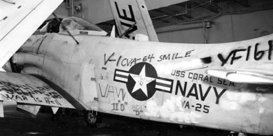Вот техники и берутся за краску, покрывая весь самолёт максимально весёлыми и интересными посланиями невнимательному летуну и своим коллегам с другого авианосца. Пусть теперь они поработают, перекрашивая этот чёртов истребитель. Страшного в этом почти ничего нет — в морских условиях машины приходится подкрашивать регулярно.