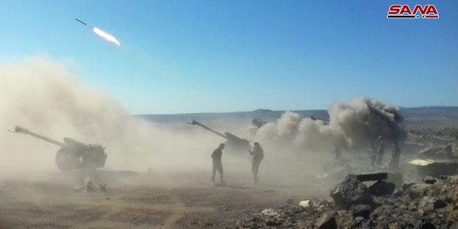 Военный корреспондент агентства САНА в провинции в Хама сообщил, что армейцы нанесли точные удары по позициям террористов так называемой группировки «Катаиб Аль-Изза», скрывающихся в горной местности и ведущих снайперские обстрелы жителей н.п. Аль-Масасна на севере провинции Хама.