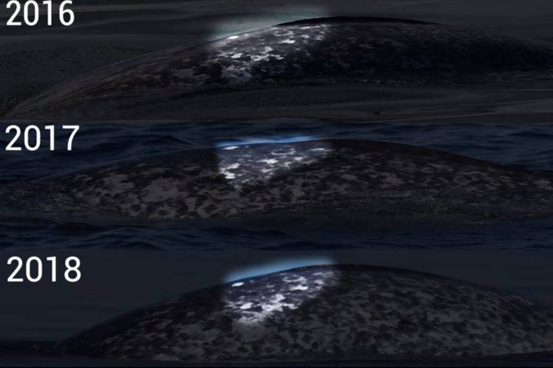 Сравнив рисунок на его шкуре, биологи пришли к выводу, что это один и тот же нарвал. Этим летом его встретили в компании 9-10 молодых белуг-самцов – и, похоже, никто из них не возражал против присутствия сородича. Нарвал следовал на одной скорости с остальными, одновременно с ними нырял, поднимался на поверхность для вдоха и также, как они, пускал пузыри.