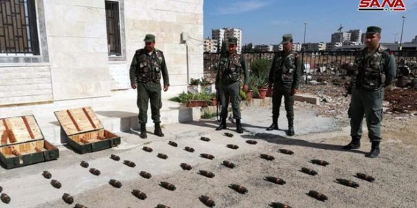В ходе прочёсывания окрестностей квартала Аль-Ваар города Хомс силовики обнаружили припрятанные перед уходом террористическими группировками боеприпасы и снаряды.