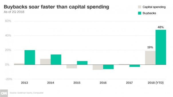 Одновременно, фактически эти же руководители направили прибыли своих корпораций на выкуп акций (прием, используемый для завышения котировок), - причем со скоростью в разы более быстрой, чем в инвестиции в развитие бизнеса: