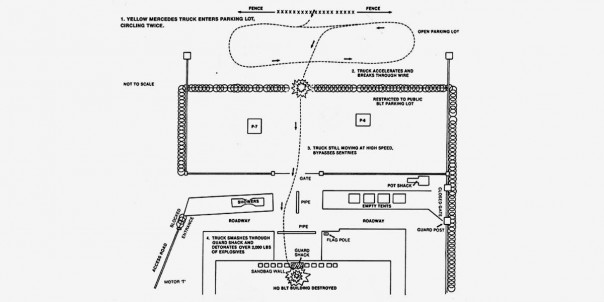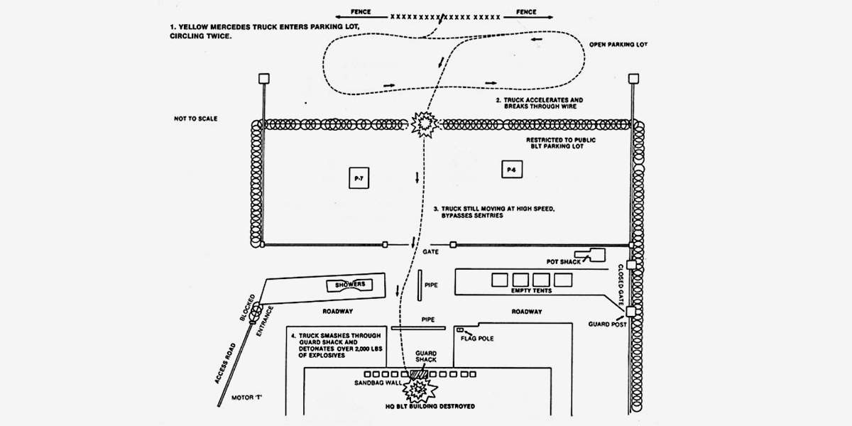 Примерно в 5:24 утра часовой младший капрал Эдди Ди Франко у поста № 6 заметил жёлтый грузовик «Мерседес-Бенц». Грузовик покрутился у парковки рядом с морпехами и уехал восвояси.