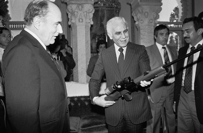1 декабря 1981 года, Алжир: во ходе своего визита президент Франции Франсуа Миттеран вручает винтовку FRF1 французского производства президенту Алжира Шадли Бенджедиду