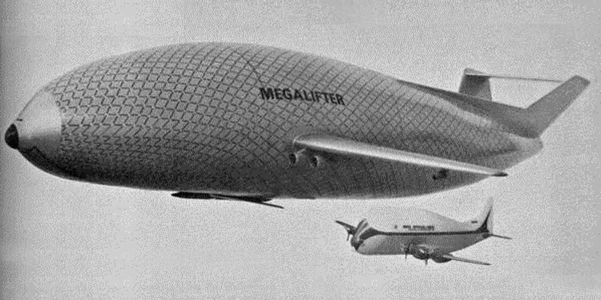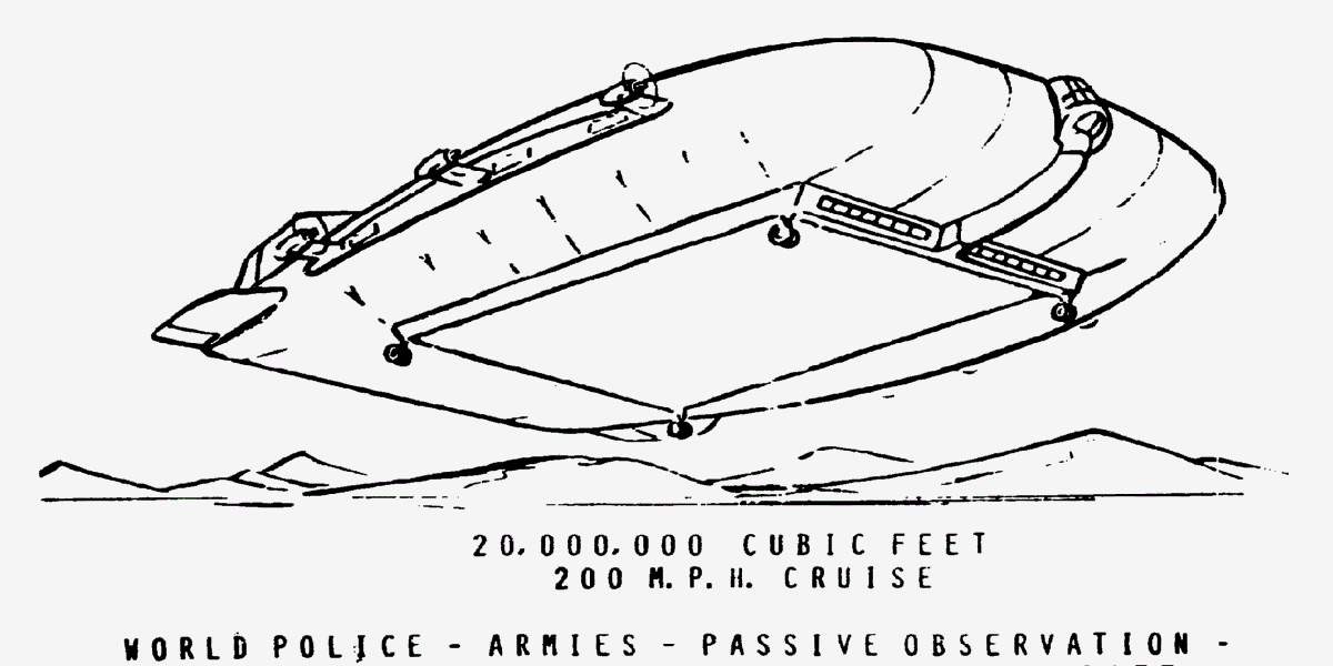Проект гигантского транспортного дирижабля-гибрида на 450 тонн груза от фирмы «Гудьир», конец 60-х годов