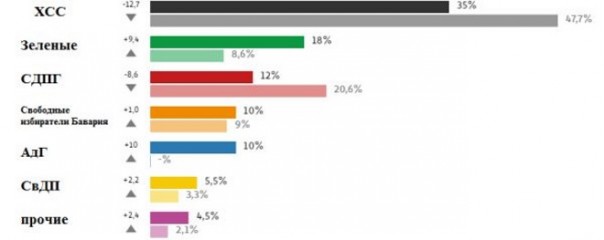 Справедливости ради стоит заметить, что рейтинги ХДС ещё ниже – 27% в конце сентября, по данным общефедеральных опросов. Учитывая, что баварские политики резко критично выступали против миграционной политики Берлина и лично Ангелы Меркель, неудачи «баварской сестрицы» не слишком печалят возглавляемый канцлером «Христианско-демократический союз».