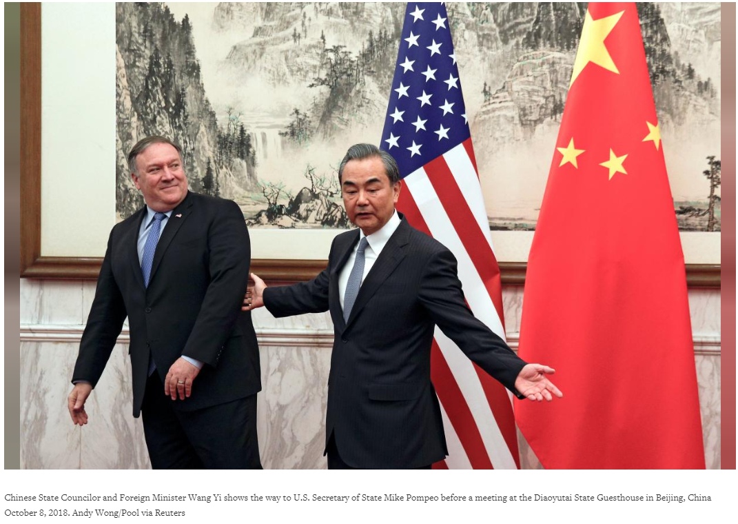 При этом Помпео и Ван открыто разошлись в объяснении причин отмены двухсторонней встречи по вопросам безопасности (министр обороны США Мэттис должен был встречаться с китайским генералитетом), которая была ранее запланирована на этот месяц.