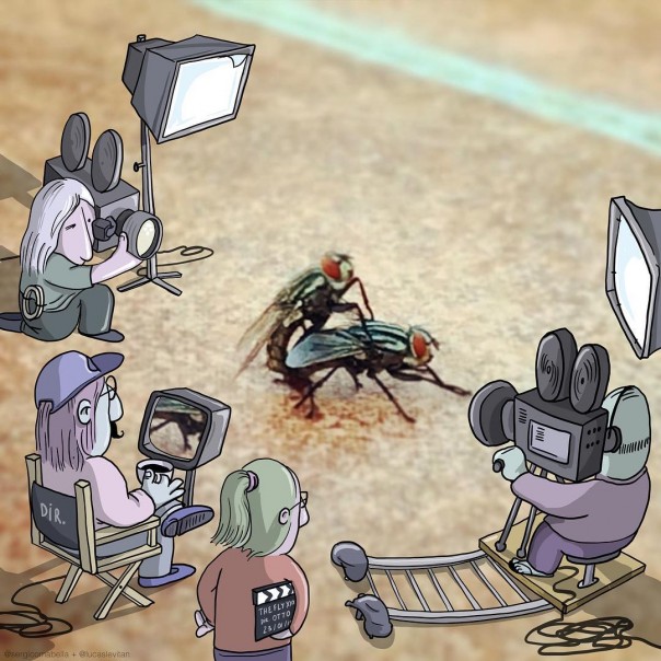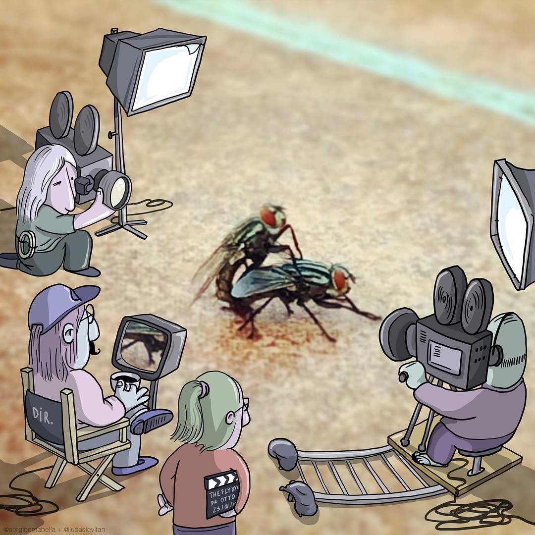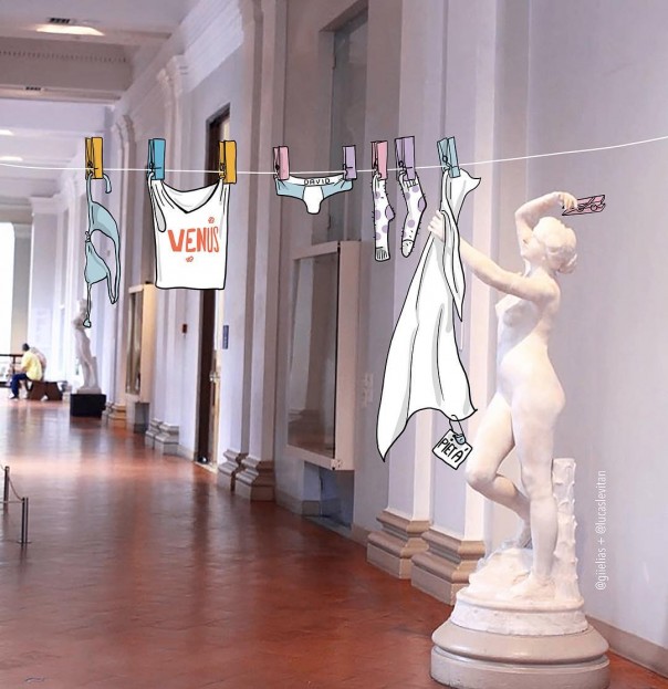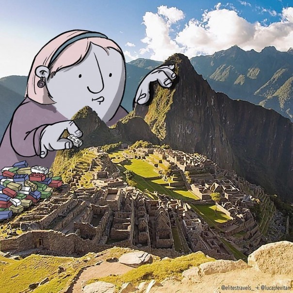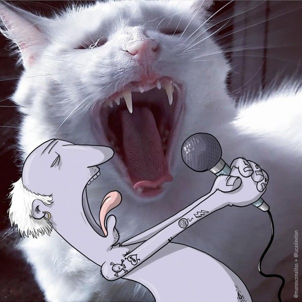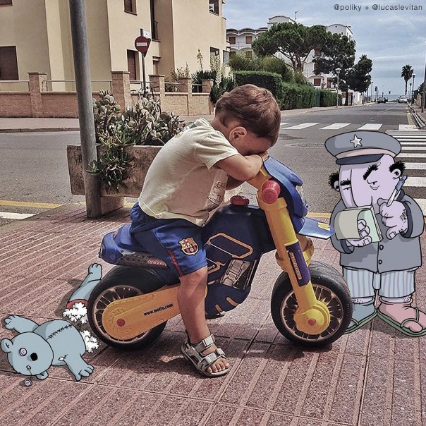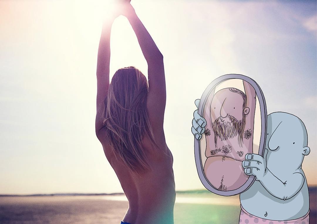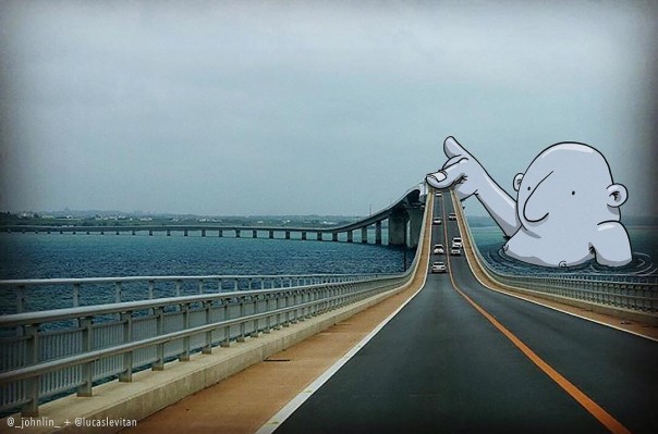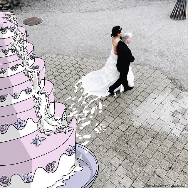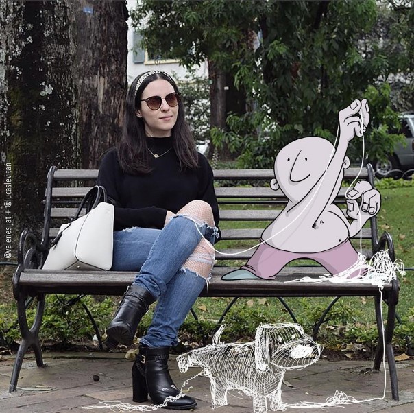 Самый известный и популярный творческий проект Лукаса Левитана называется «Фото вторжение». Он очень прост по задумке и в то же время почти уникален. Художник находит в Instagram фотографии незнакомцев и дорисовывает что-то своё, придавая снимкам совсем иной, обычно комический смысл. Получается так здорово, что теперь это своеобразная игра в «Инстаграме» (у Лукаса почти 200 тысяч подписчиков).
