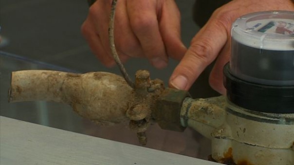Современный водопроводный счётчик на свинцовой трубе 19-го века