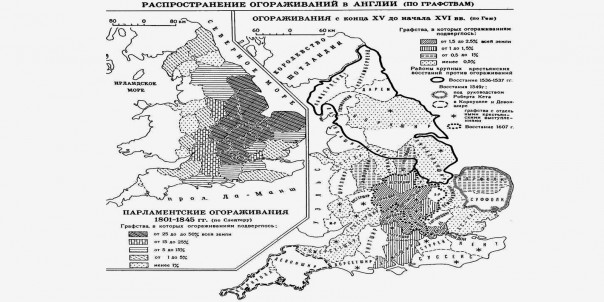 Массовые огораживания в Англии произошли намного позже — в XVIII веке. Именно об этом писал Карл Маркс в 24-й главе 1-го тома «Капитала», лишь упоминая там о событиях XVI века.