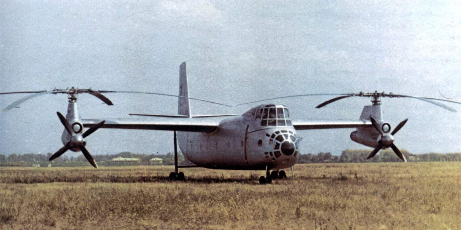 Работы над транспортными винтокрылами встречаются куда реже, самые знаменитые примеры — это, конечно, гигант Ка-22 и английский «Фейри Ротодайн». Большой несущий винт создавал проблемы в горизонтальном полёте, а немаленькое крыло сильно затрудняло взлёт и посадку.