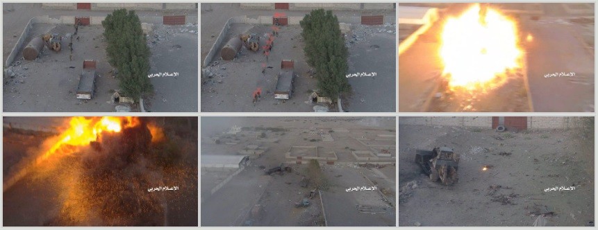 17.30 Йемен, провинция Ходейда БПЛА йеменских повстанцев-хуситов запечатлел момент взрыва заминированного автомобиля вблизи группы солдат противника. В результате взрыва погибли не менее 20 бойцов просаудовских формирований.