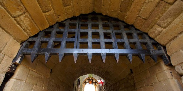 Ещё одно уязвимое место замка — ворота. Действительно, если всё построено из камня, то проще всего проломить единственную деревянную часть сооружения. Поэтому ворота сами превращались в укрепление, которое состояло из башни или даже двух, позволявших обстреливать нападающих.