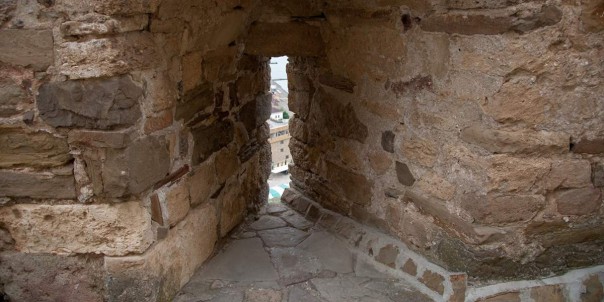 Чтобы сражаться с врагом, в стенах и башнях замка проделывались отверстия — бойницы. Их делали очень узкими с внешней стороны и широкими с внутренней. Это позволяло лучнику занимать удобную для обстрела позицию, а неприятельским стрелкам было очень сложно попасть в тонкую щель в стене.