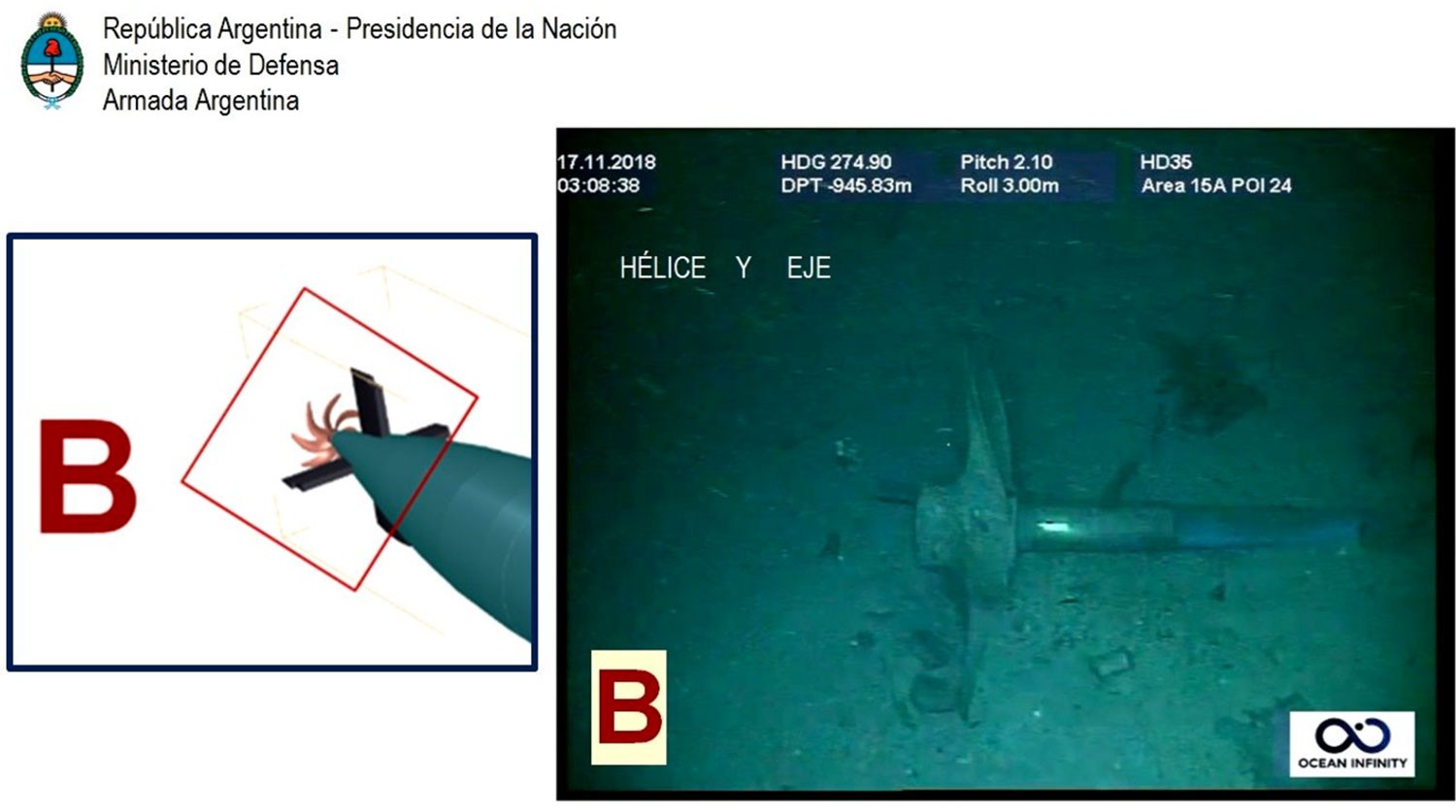 ВМС Аргентины опубликовали в Twitter фото обнаруженной подводной лодки "Сан-Хуан", затонувшей год назад.
