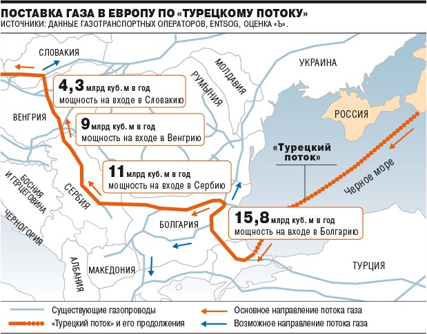 Как выяснил “Ъ”, «Газпром» определился с маршрутом поставки газа по «Турецкому потоку», который пройдет через Болгарию, Сербию, Венгрию и Словакию, и уже участвует в процедуре бронирования новых трубопроводных мощностей в этих странах. Поставки в Болгарию и Сербию через «Турецкий поток» «Газпром» собирается начать в 2020 году, в Венгрию в 2021 году, что позволит уже с 2022 года отказаться от транзита через Украину. По сути, это маршрут «Южного потока», который в ЕС заморозили в 2014 году под давлением США. Теперь придраться к проекту сложно, подход «Газпрома» полностью соответствует законодательству ЕС. Но от политических нападок это вряд ли избавит.