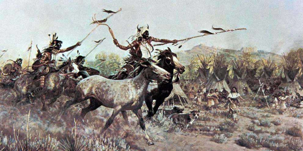 Справка. Проникновение индейцев на Великие равнины происходило и раньше. Но сильная засуха в XIII веке нанесла удар по популяции бизонов. Многие племена покинули регион, используя его лишь для сезонной охоты. В XVI веке всё изменилось. Наступил малый Ледниковый период и на Великие равнины вернулись дожди, а вместе ними и стада бизонов. Из Большого бассейна на равнины мигрировала группа шошонов, вошедших в историю как команчи. Они шли пешком, перемещая свои пожитки на волокушах.