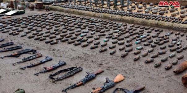 Корреспондент агентства САНА в Хомсе сообщил, что при содействии местного населения при прочесывании местности, освобожденной от бандформирований, были обнаружены тепловые ракеты, «адские пушки», пулеметы, пистолеты, снайперские винтовки и различные боеприпасы.