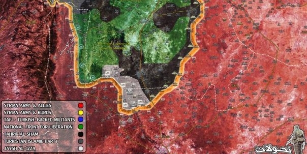 Не прекращаются ожесточенные бои между радикалами «Тахрир Аш-Шам» и членами протурецких вооруженных формирований. Согласно данным Twitter-канала (badly_xeroxed), в плен к «Джебхат Ан-Нусре» попали уже как минимум 15 боевиков объединенных сил вооруженной оппозиции, поддерживаемых Турцией.