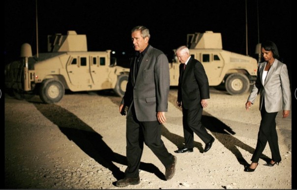 Это военные преступники Кондолиза Райс и Джордж Буш Младший, развязавшие войну в Ираке. Саддам Хусейн повешен, страна уничтожена, никто не сидит, а теперь еще некоторые товарищи из США заявляют, что то самое химическое оружие, про которое врал еще один военный преступник Колин Паэул, не нашли в Ираке лишь потому, что Хусейн успел передать его Асаду. И поэтому, несмотря на то, что ООН подтвердила уничтожение запасов химического оружия в Сирии, подлый Башар использует те тайные запасы от 2003 года... что скажет по этому поводу философ Андрей Никулин?