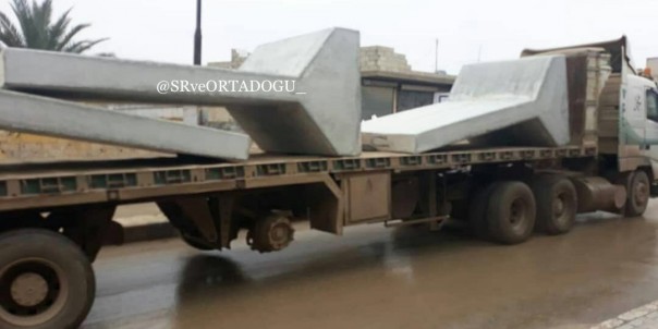 15.00. Инженерные войск вооруженных сил Турции доставляют в провинцию Идлиб бетонные блоки для строительства ограждений.