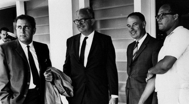На снимке 1964 года Джеральд Булл (крайний слева) - в Институте космических исследований при Университете Макгилла в Канаде