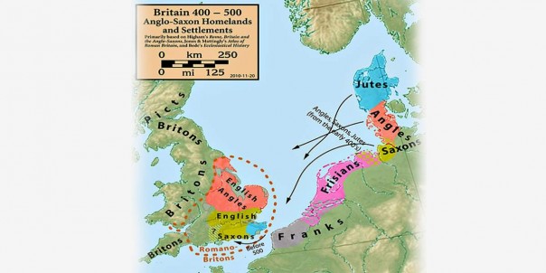 Вскоре на остров обрушились волны англов, ранее обитавших в Ютландии, и саксов. С ними и сражался легендарный король Артур. Но Британию германские племена завоевали. И там была создана гептархия — семь королевств (три — англов, три — саксов и одно, Кент, — ютов). Переселялись и фризы, но своё государство на острове они не построили.