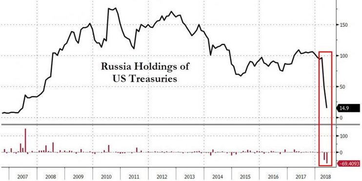 Напомним, что наша страна начала резко сокращать вложения в трежерис в апреле прошлого года на фоне введения санкций в отношении российских компаний: тогда всего за два месяца вложения в долговые бумаги США рухнули с $96 млрд до $15 млрд.