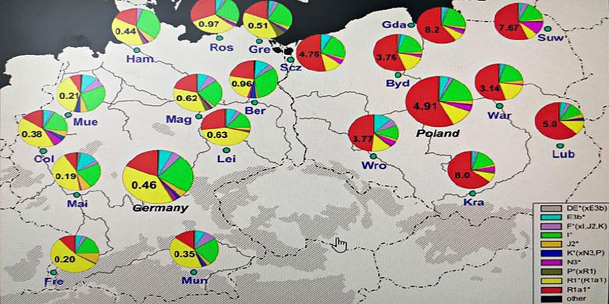 Ответ на этот вопрос даст Y-хромосомная гаплогруппа R1a1, которая ассоциируется с древними миграциями индоевропейских племён. Этот генетический маркер позволяет примерно определить, насколько заметно славяне отметились в конкретной популяции. В Германии доля R1a1 в различных землях колеблется в пределах 6-24 процентов и повышается с запада на восток, а в Западной Померании и районе Лейпцига достигает своего максимума.