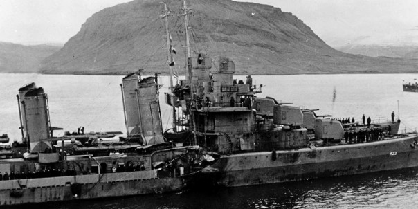 Эсминец DD-432 «Карни» с пробоиной от торпеды немецкой подлодки U-568 остался на плаву. Другому американскому эсминцу DD-245 «Рубен Джеймс» повезло гораздо меньше