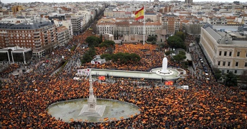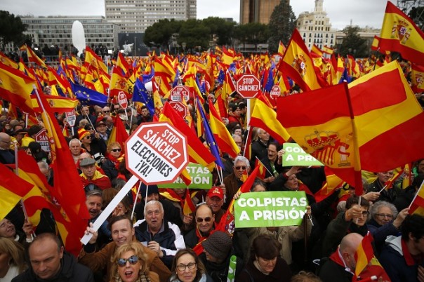 В воскресенье, 10 февраля, десятки тысяч испанцев вышли на акцию протеста в Мадриде за единство Испании, требуя отставки премьер-министра страны Педро Санчеса и проведения новых парламентских выборов.