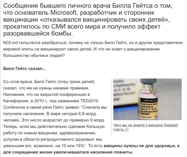 P.S. А почему никто ещё не высказал сенсационную мысль о том, что Билл Гейтс, который отказался от прививок для собственных детей, - русский агент влияния или, на худой конец, жертва кремлёвской пропаганды?